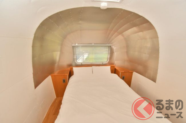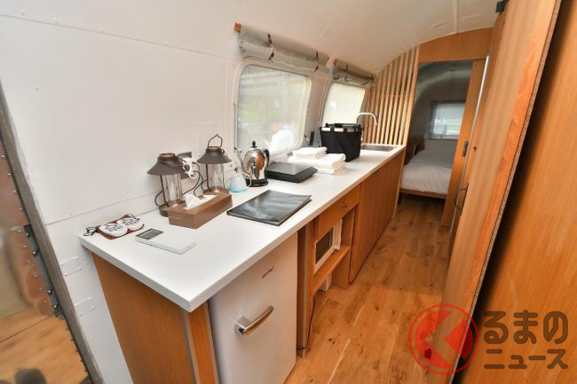 もちろん、トレーラーヴィラ同様、冷暖房、トイレ、シャワー、冷蔵庫、ダブルベッド完備。トレーラーヴィラと比べると少し狭いですが、無骨なアルミの内装は“戦艦の中”で暮らしているようなワクワク感もあり、何にも代えがたい“思い出”になります。