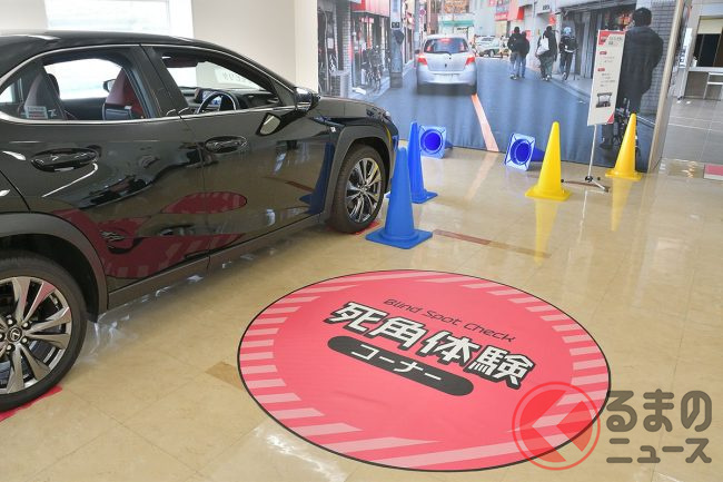 「コミュニケーションセンター」では、実車の近くにパイロンを配置し、死角がわかるコーナーや、反射神経や動体視力を試せるゲームなどが置いてあり、ここだけでも楽しく安全運転を学べます。