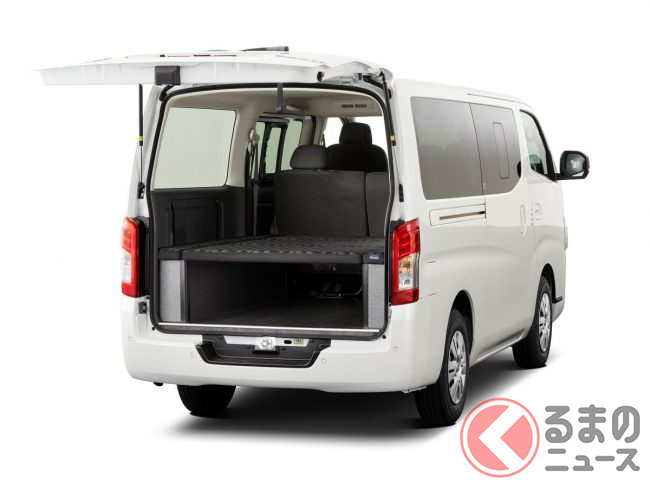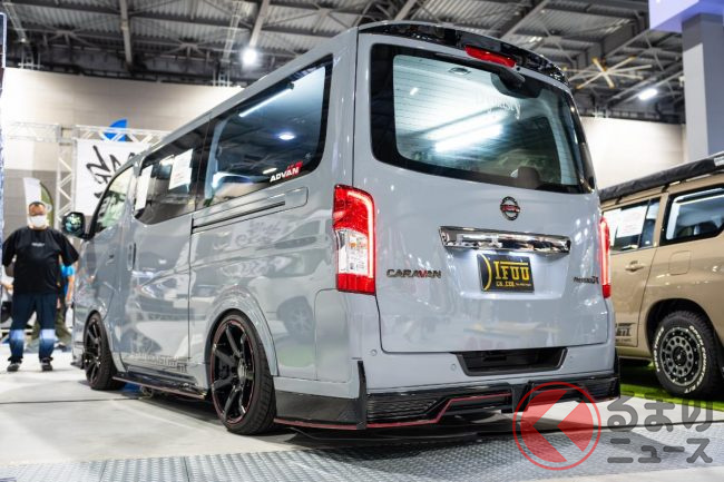 今回展示したのはキャラバンのカスタム車。キャラバンは日産が50年以上展開している商用バンであり、ライバル車のハイエースとともに、ワンボックス型商用バンの定番として長らくラインナップされています。