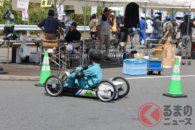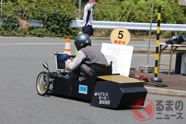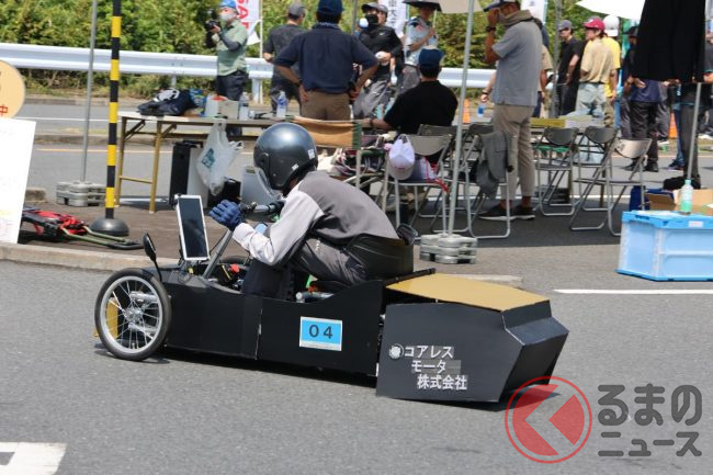 モノづくりの楽しさやエネルギー問題の学びなどを目的に、中・高校生がチームを組み、手作りの電気自動車で競われるものです。本年の大会では、関東、長野、静岡、奈良から19チームが参加。そのうち唯一の大人によるチームとして、日産自動車がエントリーしました。