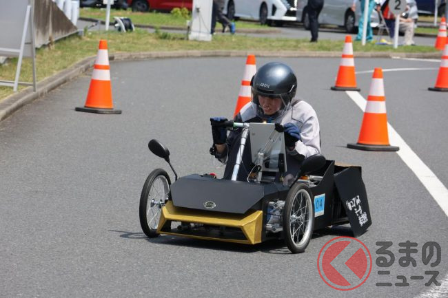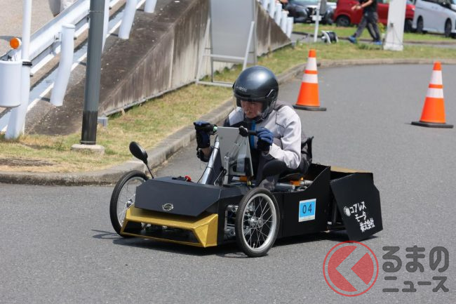 GT-R生産終了が目前に迫った2025年8月23日、日産自動車のチーム「日産生産技術開発」は、東京都多摩市の東急自動車学校で開催された「エコ1チャレンジカップ」に出場しました。