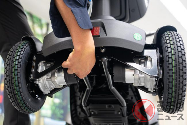 規格としては「電動車いす」に属しますが、かつてなくスタイリッシュなデザインを採用し、また目線の高さによる視野の広さと、直感的で運転自体を楽しめる操作性を実現したことで、様々な用途に活躍できるパーソナルモビリティに仕上がっているといいます。