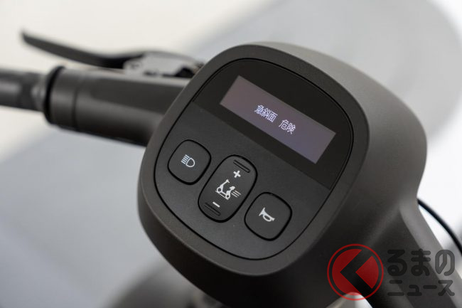 ただしバイクでは左手側のレバーは基本的に「クラッチ」ですが、新型e-SNEAKERではそこにブレーキレバーがあり、しかも通常では使用しない“緊急用”のブレーキとなっています。