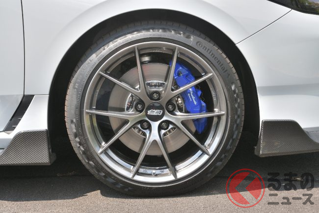 19インチホイールの「FR10」(1本17万6000円)は、BBS社と共同開発。鍛造としたことで、標準装備のアルミホイールと比較し、1本当たり4kgの軽量化を実現。ハンドリングを向上させます。
