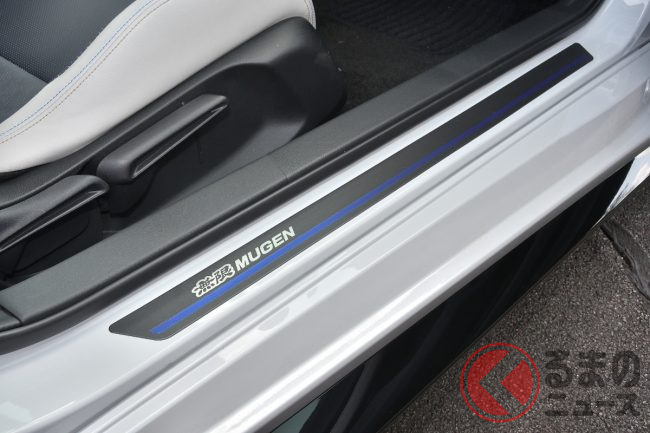 「スカッフプレート」(2万9700円)も、無限 MUGENロゴとブルーのアクセントカラーを取り入れ、ドアを開けた際にスポーティさをプラスしています。