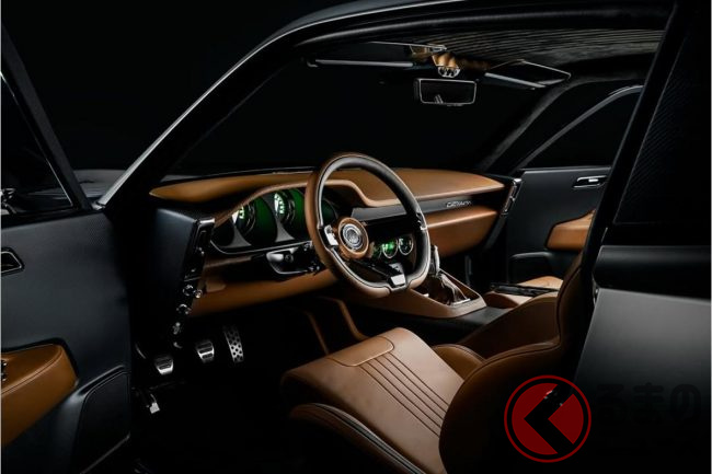 内装はダッシュボードからドアトリム、バケットシートにいたるまでブラウンのレザーやカーボンファイバーでコーディネートし、質感を高めています。