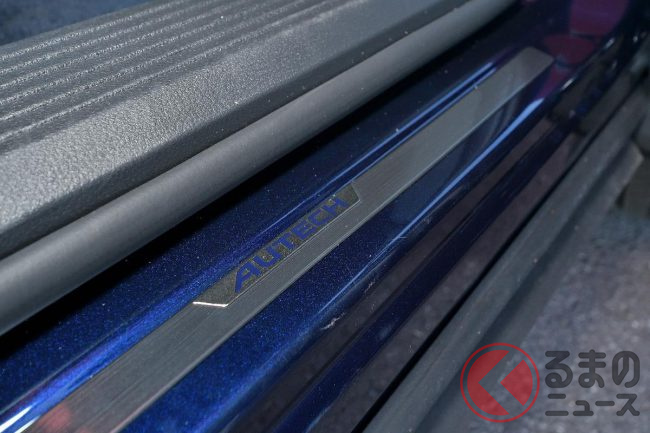 たとえば、メタル調フィニッシュのフロント/リアプロテクター、サイドシルダーククロムフィニッシャー、シグネチャーLEDといったオーテック専用エクステリアが装着されています。