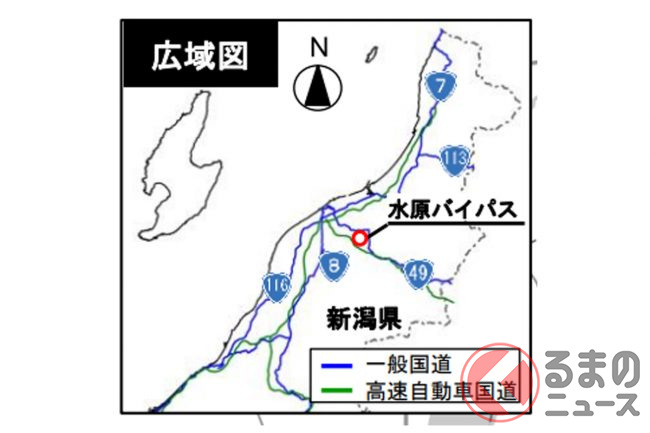 そんな国道49号のうち、新潟県阿賀野市を通る「水原バイパス」が2025年6月8日に全線開通を果たしました。