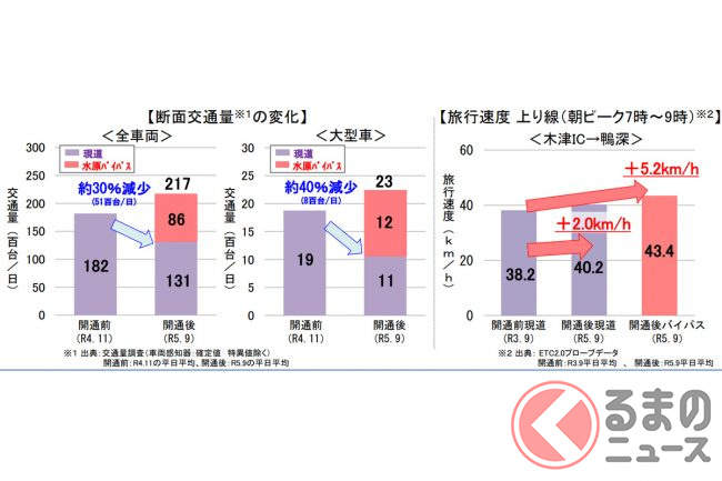 国土交通省の資料によれば、事業区間の走行時間は約11分短縮され、渋滞損失時間は年間約63万人時間分の削減が見込まれています。