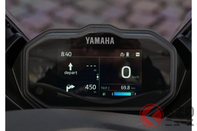 このディスプレイは、ヤマハの「Y-Connect」アプリをインストールしたスマートフォンと接続することで、ナビゲーション機能のほか交差点などでの進行方向を矢印アイコンや距離なども表示します。