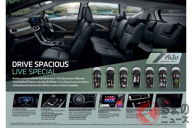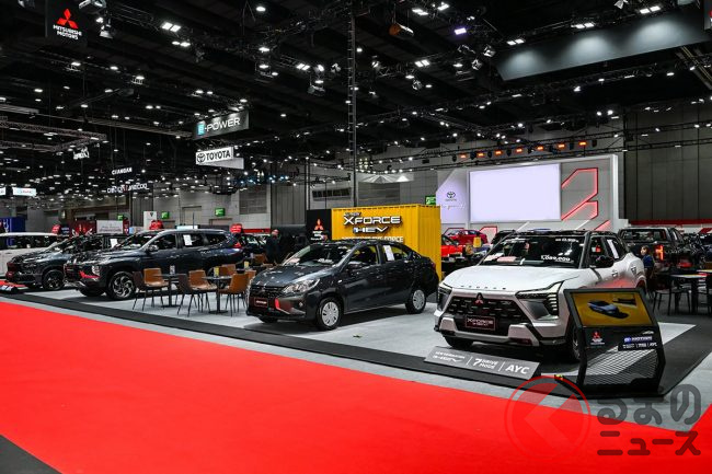 三菱自動車のタイ法人が、バンコクで開催中の自動車展示販売会「BIG MOTOR SALE 2025」に最新モデルを出展しました。日本未導入の3列シートハイブリッドミニバン「エクスパンダーHEV」も展示されたのですが、どのようなモデルなのでしょうか。