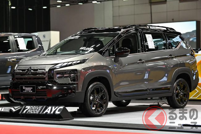三菱「“最新型”7人乗りミニバン」公開! 全長4.6mの“ちょうどいいサイズ”に「高性能HEV」搭載! 地上高上げでタフ感マシマシな「エクスパンダー」タイで実車公開!