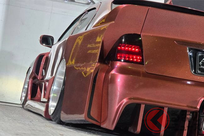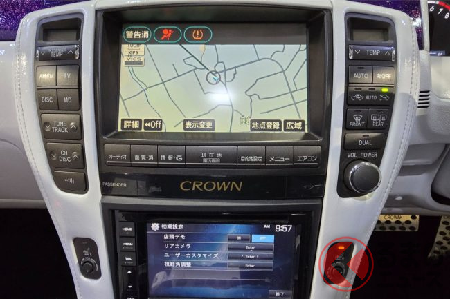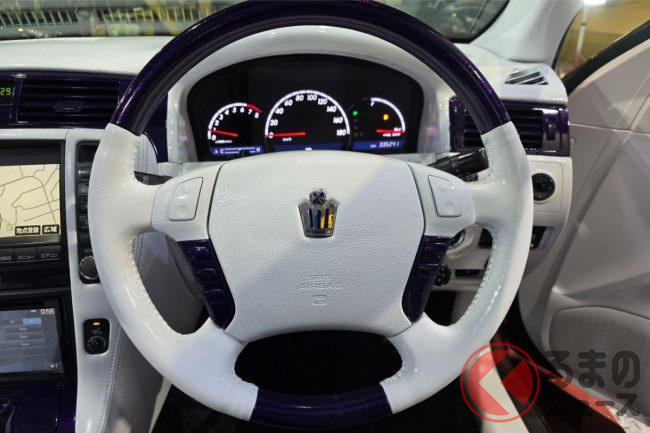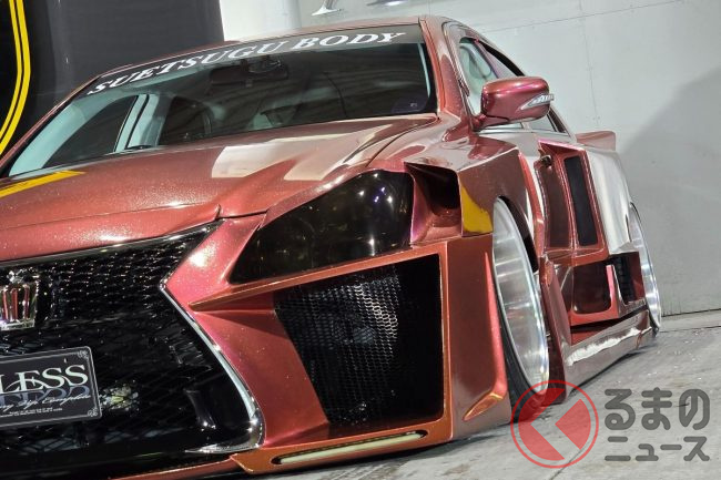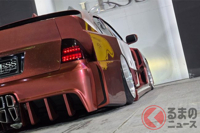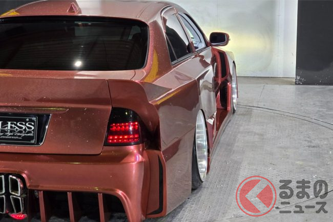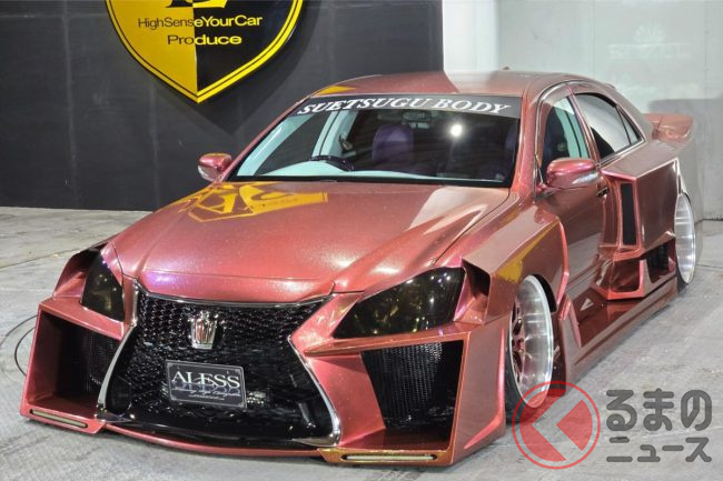 中古車市場で発見されたトヨタの高級セダン「クラウン」の上級グレード「クラウンロイヤル」は、ノーマル時の上品で落ち着いた雰囲気とはまったく異なり、強烈な存在感を放つカスタム仕様へと姿を変えていました。