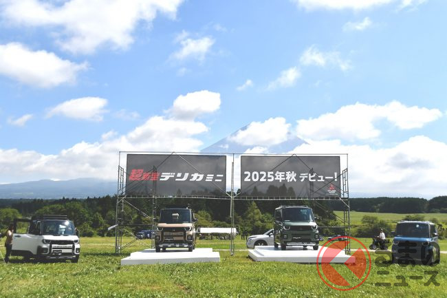 2025年8月22日に先行予約受付がスタートしたばかりで、まだディーラーなどでは見る機会が限られているデリカミニの新型モデルが複数台展示されたこともあって、新色追加と合わせて4兄弟となったデリカミニのキャラクター「デリ丸。」と一緒に写真撮影がおこなわれるなど、会場でも特に盛り上がっていました。