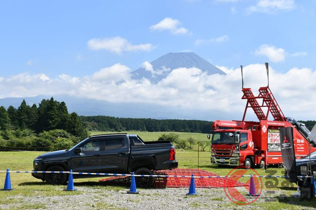 また参加型コンテンツの「ネイチャードライブ!わくわく試乗体験会」は、トライトンやデリカD:5、アウトランダーPHEVといった最新の三菱車で、ふもとっぱらキャンプ場内特設林道コースを実際に走行できるものです。泥濘路(でいねいろ)や急な登坂路などもあり、三菱車の4WD性能を体感できるコースプログラムとなっていました。
