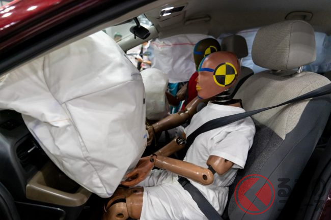試験に使う車両は、実際にエンジンをかけてはいませんが、イグニッションONの状態で、電気系統や燃料系統(ガソリンの循環など)を作動させて試験を行なわれます。これは、ハイブリッドバッテリーの短絡やガソリン漏れの有無など、動力装置が作動した状態での安全性を確認するためだといいます。