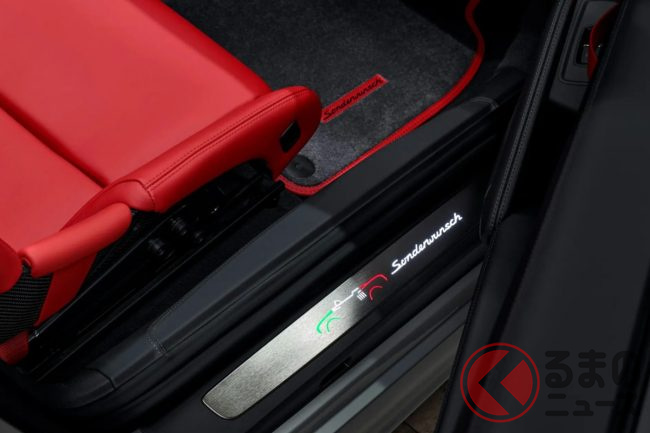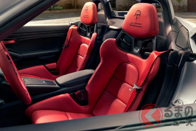 インテリアにも特別仕様が光ります。ヘッドレストには「ラ・カレラ・パナメリカーナ」のロゴを刺繍し、カーマインレッドのシートとステアリングホイールが鮮烈な印象を放ちます。