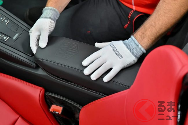 さらにセンターアームレストには、タグ・ホイヤーが255本限定で製作した「カレラ クロノグラフ トゥールビヨン×ポルシェ パナメリカーナ」専用ウォッチマウントを配置。スペシャルモデルならではの遊び心とコレクターズアイテムとしての魅力が融合しています。