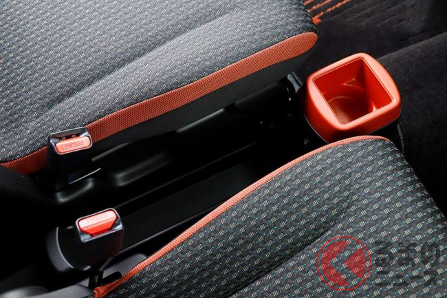 展示車両はレッドのボディカラーにホワイトルーフを組み合わせた2トーン仕様。