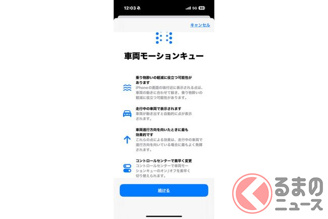 走行中にスマートフォンを見たとき、乗り物酔いを軽減してくれる(かもしれない)「車両モーションキュー」という機能があるのをご存知ですか。
