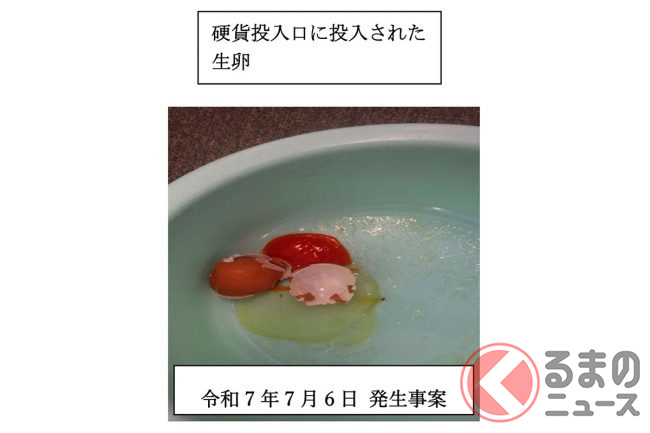 そしてさらに7月6日の23時42分ころ、上り線の料金徴収機器の硬貨投入口に、またしても生卵が投入され、約4時間も1箇所のレーンが使えなくなりました。