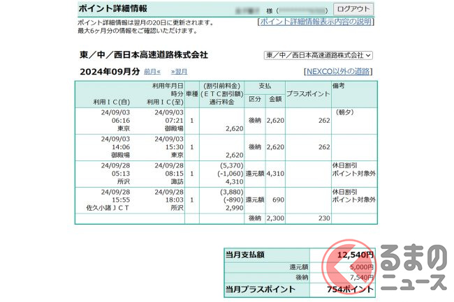 走行距離に応じたポイントも付与されるため、通勤や出張などで高速道路を頻繁に使う人には大きなメリットがあります。