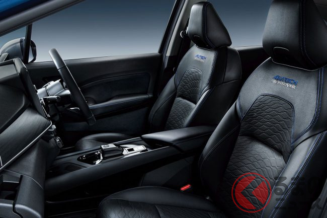 たとえば、エクステリアにはオーテック専用のドットパターンが施されたフロントグリルや、ブルーのシグネチャーLEDが採用されていたり、メタル調ドアミラー、ブラックのホイールアーチガーニッシュが装備されていたりと、アクティブな雰囲気が強調されています。