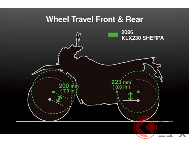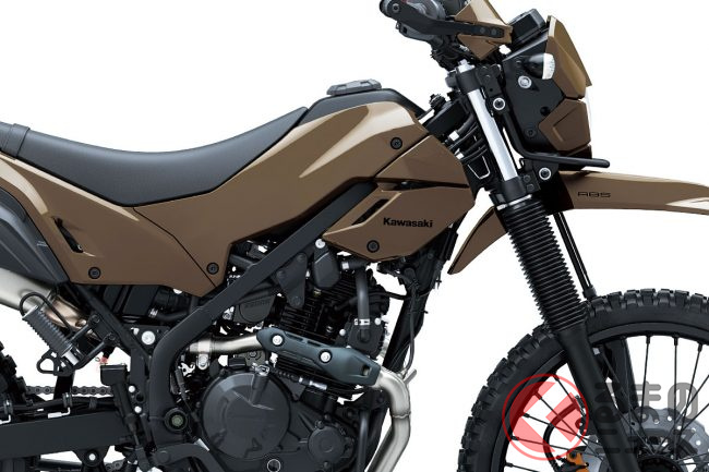新型KLX230 DFは、同じくカワサキのマルチパーパスモデル「KLX230シェルパ」をベースとしています。
