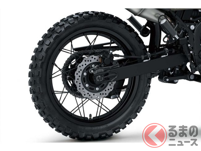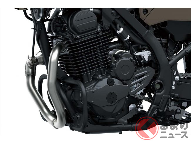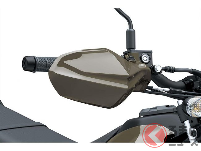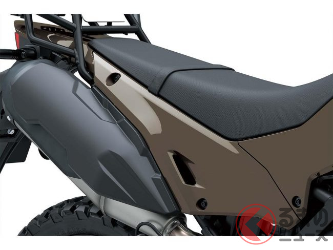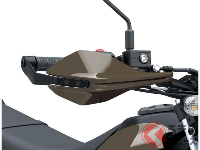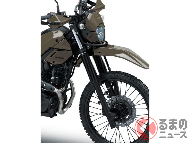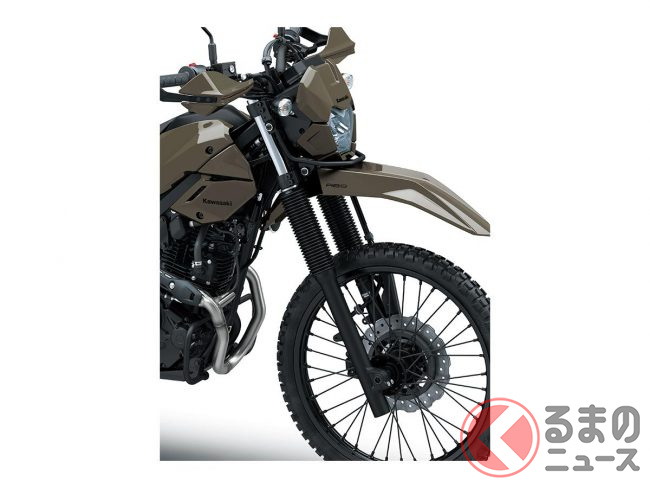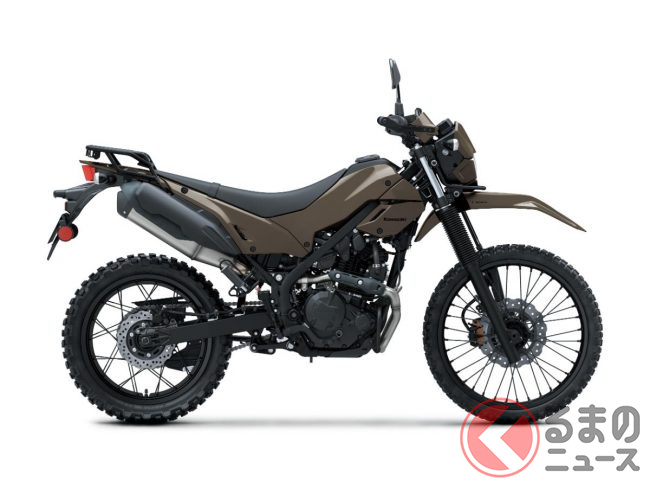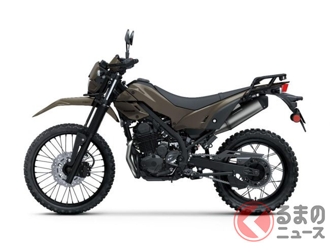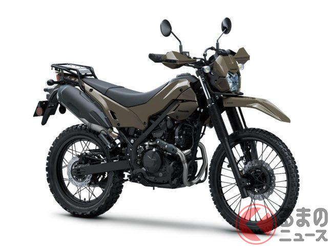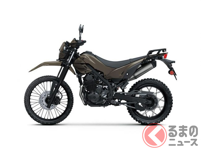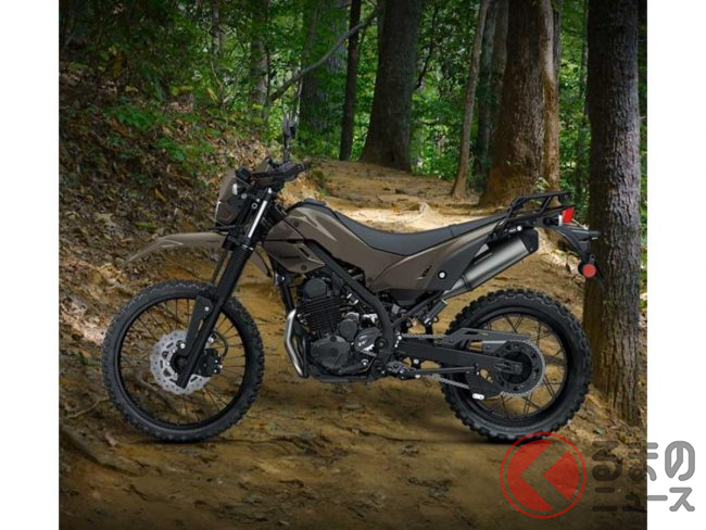 新車68万円! カワサキが超タフな「新型オフロードバイク」発売! ゴツゴツの“ミリタリー感”が最高にイイ! 「リアキャリア」や「エンジンガード」も標準搭載でツーリングにも最適な「新型KLX230 DF」とは!