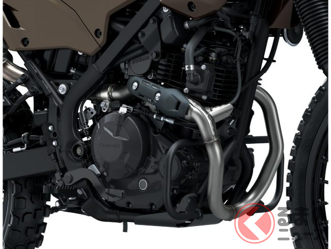 車体をアースカラーで統一しつつ、エンジンやフレーム、スイングアームはブラックアウト仕上げとすることで、信頼性の高さも感じられる洗練のスタイルとなっています。