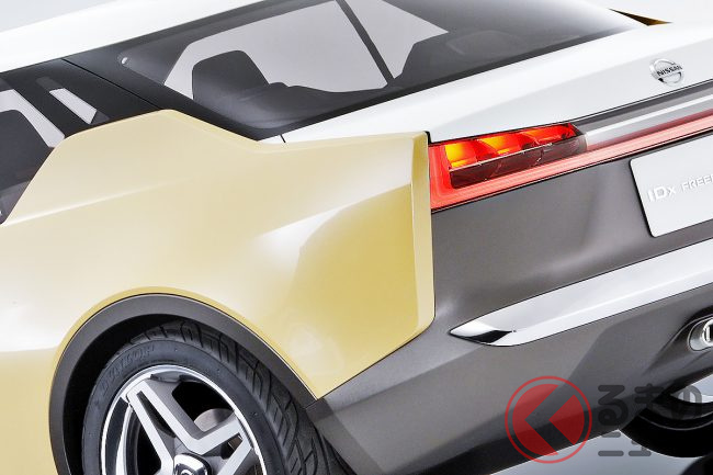 「シルビア」後継!? 日産「2ドア“FR”クーペ」に注目! 全長4.1m“ちょうどいい”カクカクボディに「名車オマージュ」デザイン採用! 「テンロク“ターボ”」搭載で運転楽しそうな「IDx」コンセプトがスゴかった!