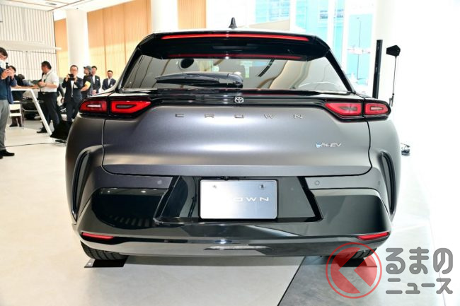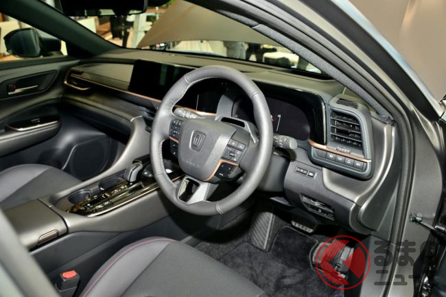 エクステリアには、最新の「ハンマーヘッド」モチーフのフロントフェイスに、抑揚のあるフェンダー造形を採用。リアはクラウンシリーズ共通の真一文字テールランプはあえて採用せず、かつての「クラウンアスリート」のような4灯式を備え、スポーティさを際立たせています。