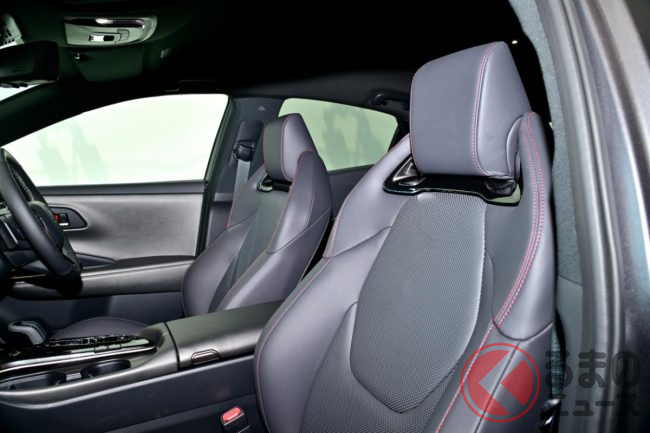 いっぽう、インテリアはいくつか異なります、シート自体はZと共通のスポーツタイプですが、表皮を本革からファブリック×合成皮革のコンビシートに変更。フルレザーではないものの、質感の高いものとなっています。