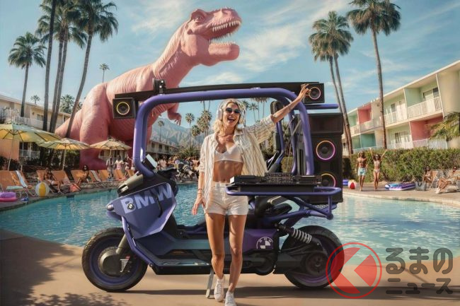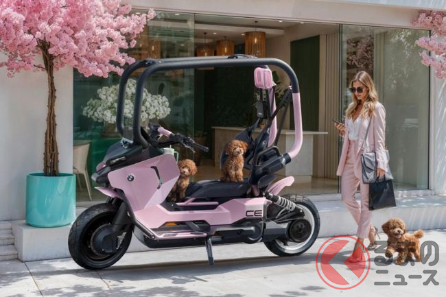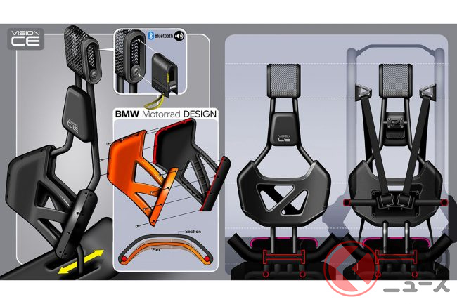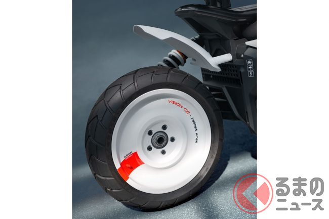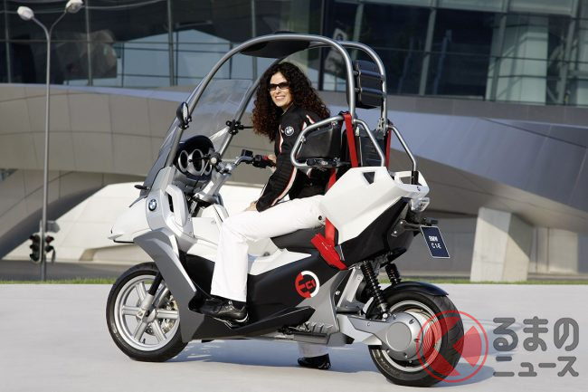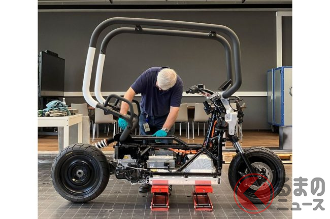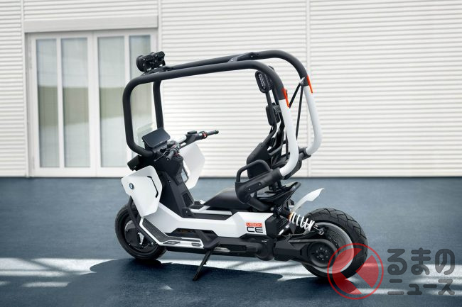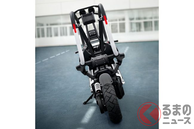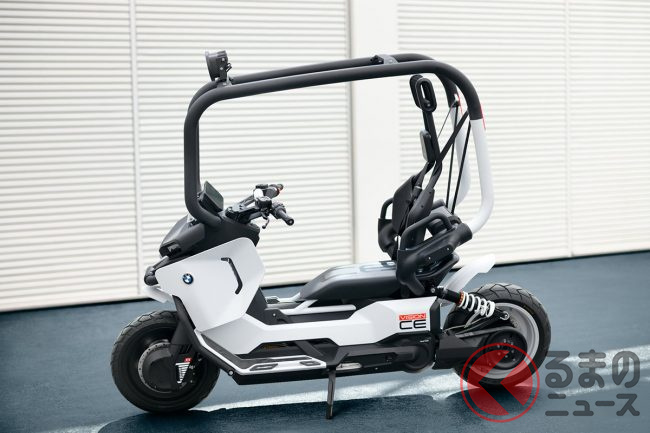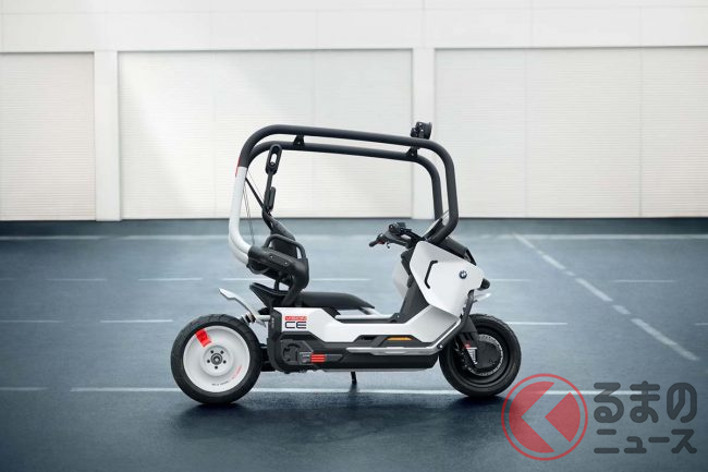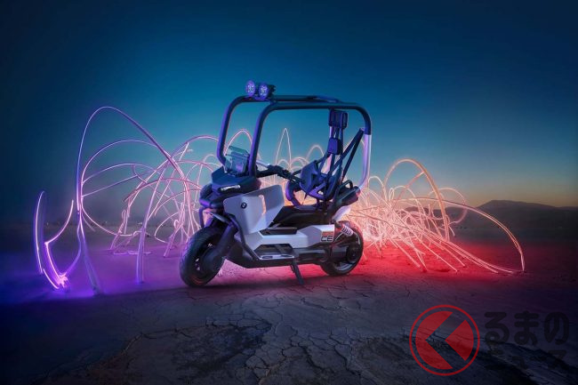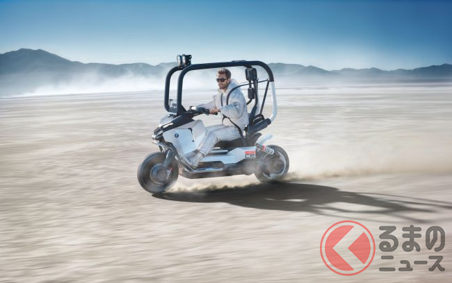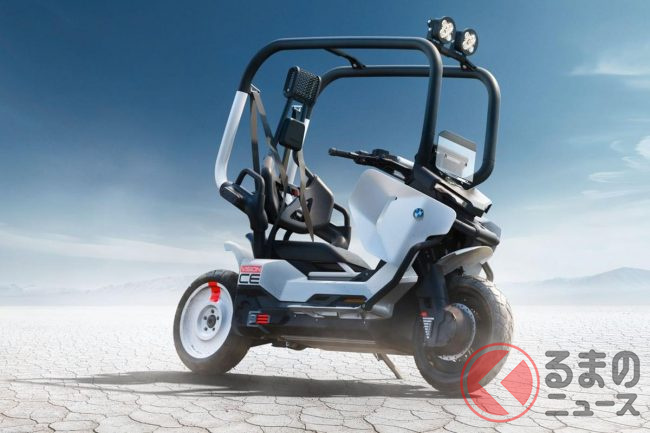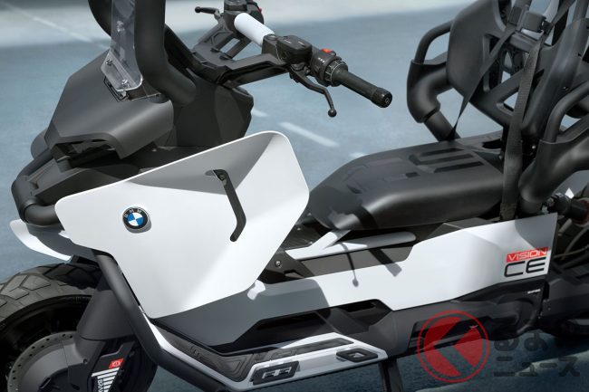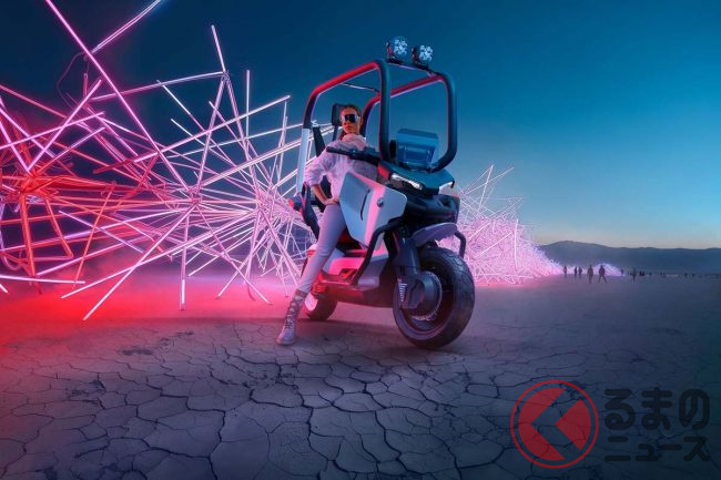 BMWが「ノーヘルで乗れるバイク」を初公開! まるでホンダ「ジャイロキャノピー」な“ケージ構造”×自立機能も搭載! 画期的な新コンセプトモデル「Vision CE」発表