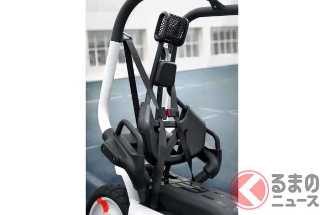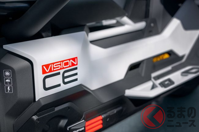 Vision CEの最も注目すべき特徴は、排出ガスゼロの電動駆動に加え、ヘルメットやプロテクターを必要としない安全設計です。金属チューブ複合材で構成される「ケージ」構造と、シートベルト付きの専用シートが一体となり、これまでにない安全なライディング体験を可能にします。この設計により、ライダーはより自由な感覚を味わい、リラックスした気軽なライディングを楽しむことができます。