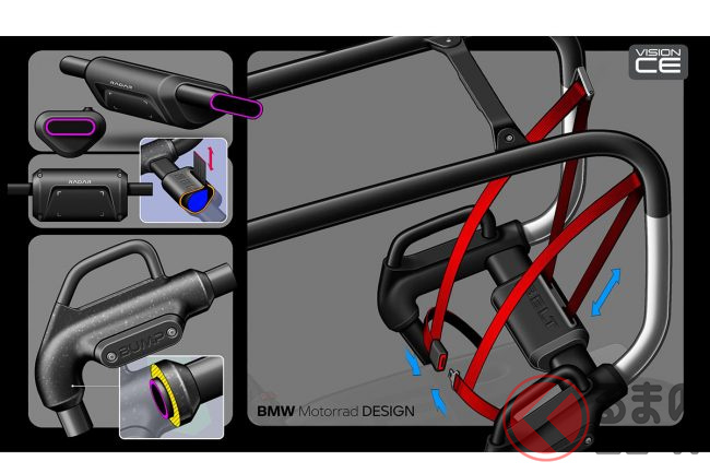 Vision CEは都市中心部における電動モビリティの未来像を示すとともに、インテリジェントでコネクテッドな電動バイク分野におけるBMW Motorradの先進性を強調する存在として位置づけられています。
