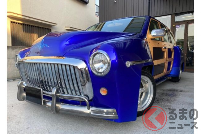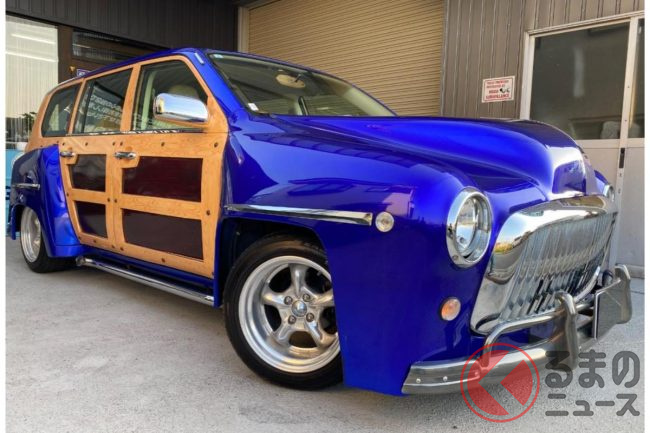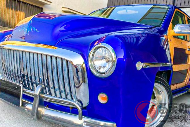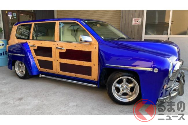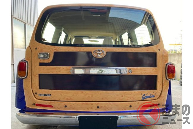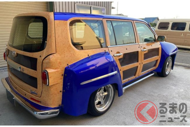 えっ…! トヨタ「プロボックス」なの!? 超レトロ顔の「商用バン」がスゴイ! ウッドパネル&鮮烈ブルーがカッコイイ「カスタムモデル」とは
