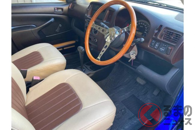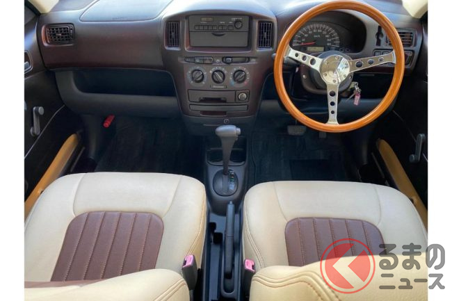 インテリアにはウッドステアリングを採用しているほか、ブラウンの配色が施されるなど、外装と同様のレトロな雰囲気を醸し出そうとしている様子が見られます。