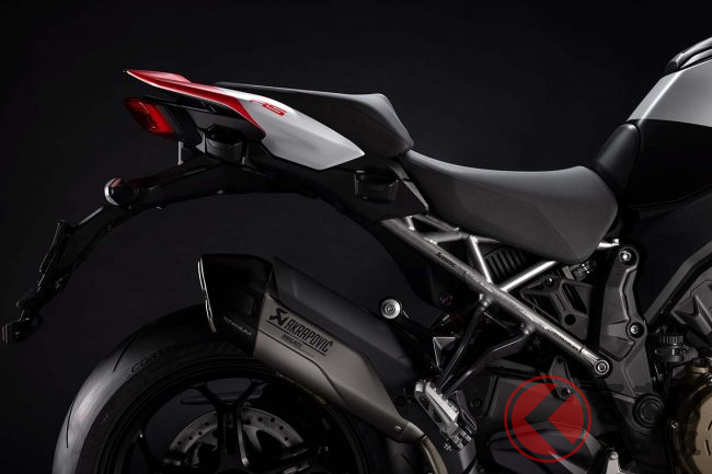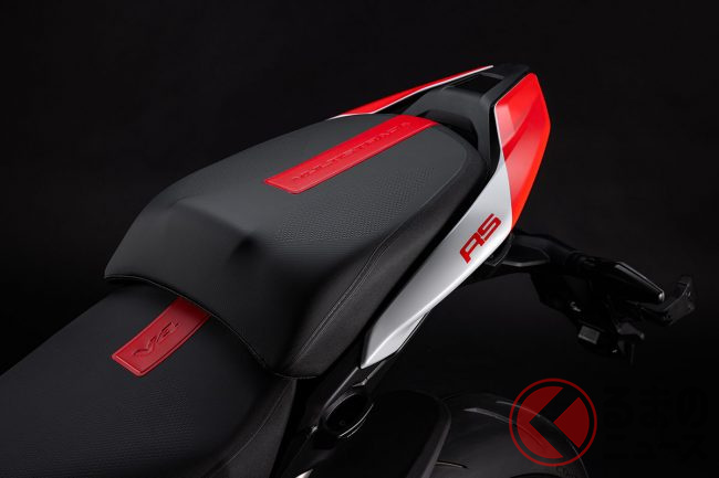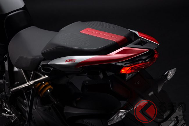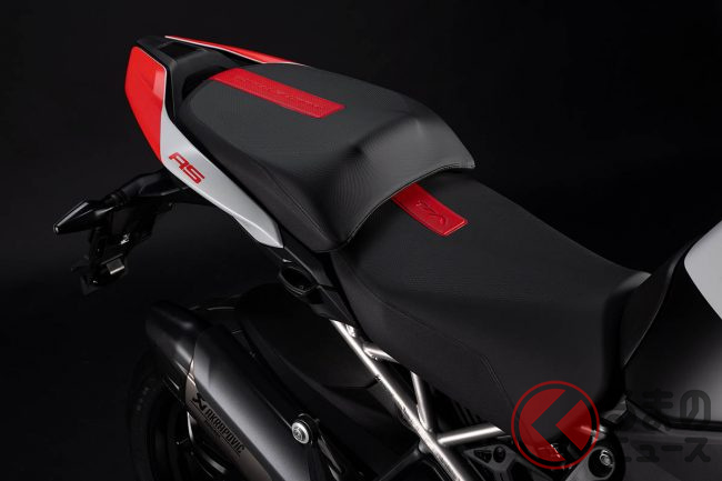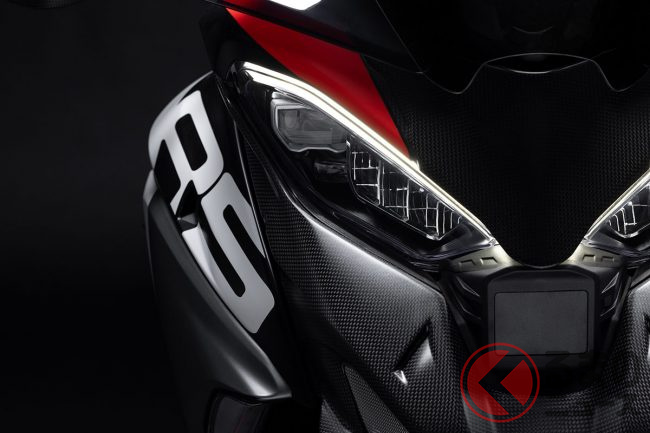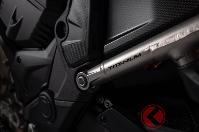 その他の特徴として、カーボン製のフロントフェンダー、ハンドガード、ヒートシールドを備え、280mmに大型化されたリアディスクやコーナリングABSを備えたブレーキシステムも搭載しており、トップケースの装着が可能なように設計された超軽量チタン製のリアサブフレームも特筆すべき点となっています。