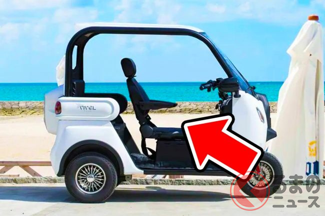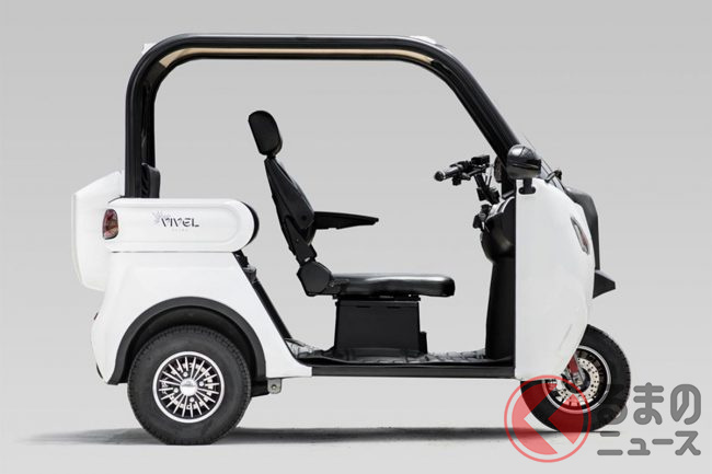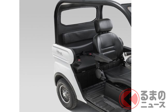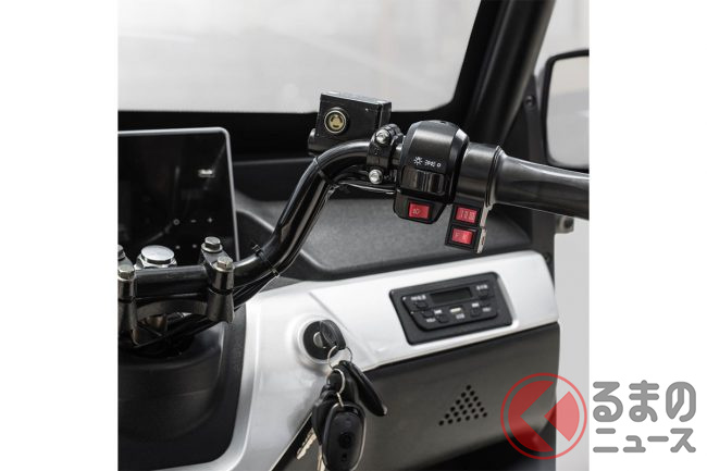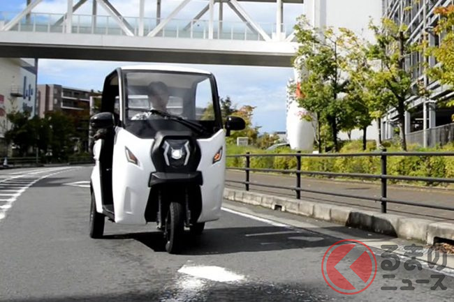 三輪EVとして設計されており、普通免許(AT限定可)で運転できるほか、車検・車庫証明も不要。バイク感覚で使える手軽さが特徴で、高齢者のセカンドカーや子どもの送迎用途としても注目されています。