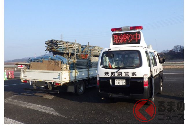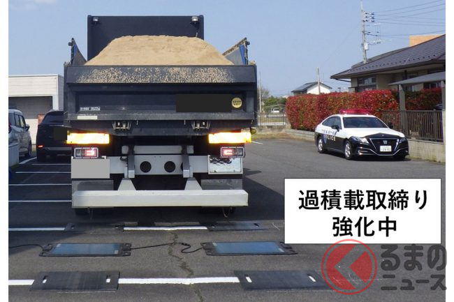 さて、茨城県警では近年、過積載の取り締まりを強化しており、大型車の通行が多い主要国道を中心に、白バイや覆面パトカーなどを使って、直接過積載疑いのクルマを1台ずつ調べているほか、抜き打ちで重力測定所を設け、その場で検挙しています。