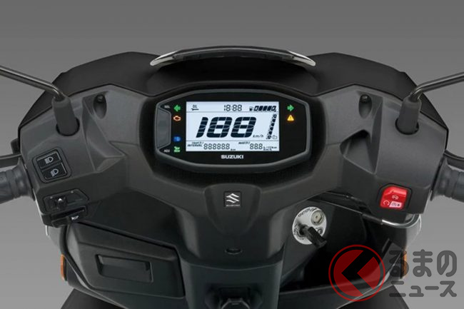 装備面では、ワンプッシュで始動できるスズキイージースタートシステムを採用。さらに、フル液晶ディスプレイの軽量インストルメントパネル、ボディマウント式LEDヘッドランプ、個性的なLEDテールランプなどが備わっています。また、いたずらや盗難防止に役立つシャッター付きキーシリンダーも装備されています。