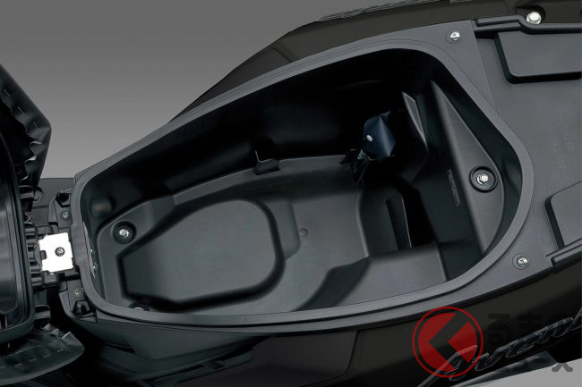 実用性においても優れた機能を多数搭載しており、停車時に左ブレーキをかけた状態を保持できるリアブレーキロックレバー、USBソケットを備えたフロントボックスとインナーラック、広々としたフロアボード、コンパクトに収納できる折りたたみ式ホルダー、そして容量21.5Lのシート下収納スペースなど、日常使いに便利な要素が充実しています。