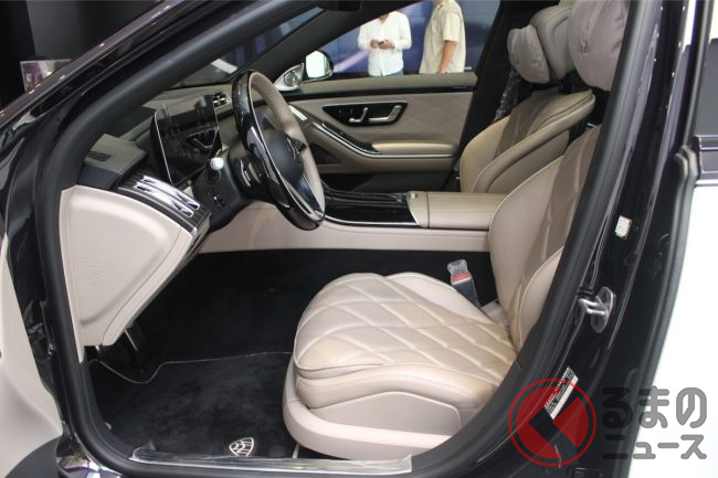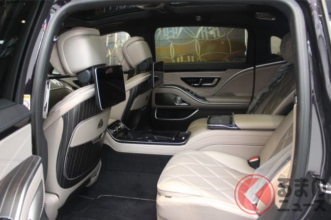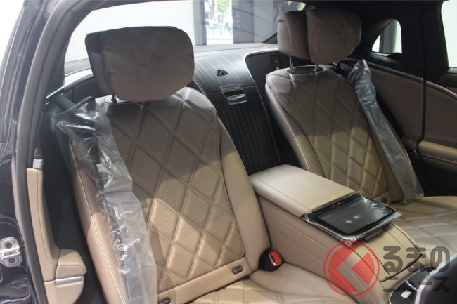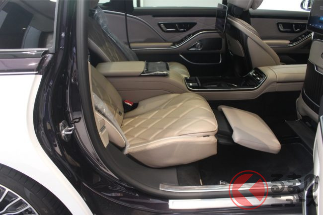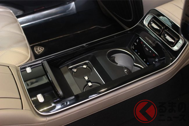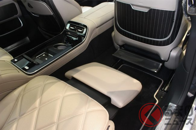 後席は左右独立の「ファーストクラスパッケージ」となり、クーリングボックスやシャンパングラスも備わるなど、極上のショーファードリブン空間を演出しています。