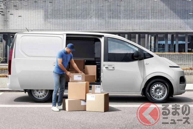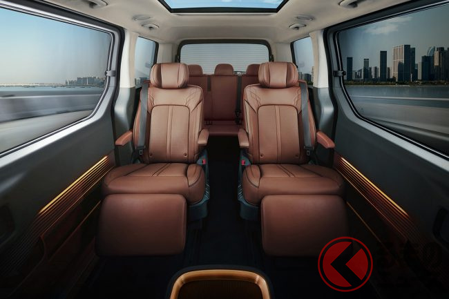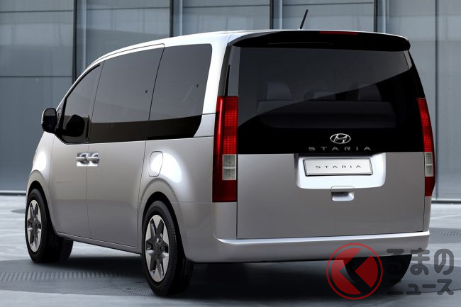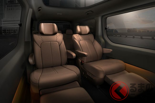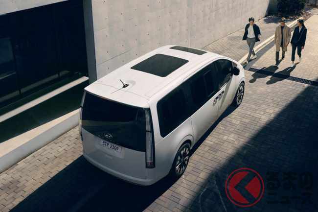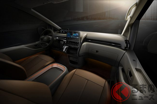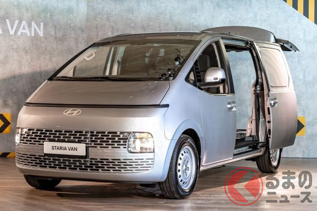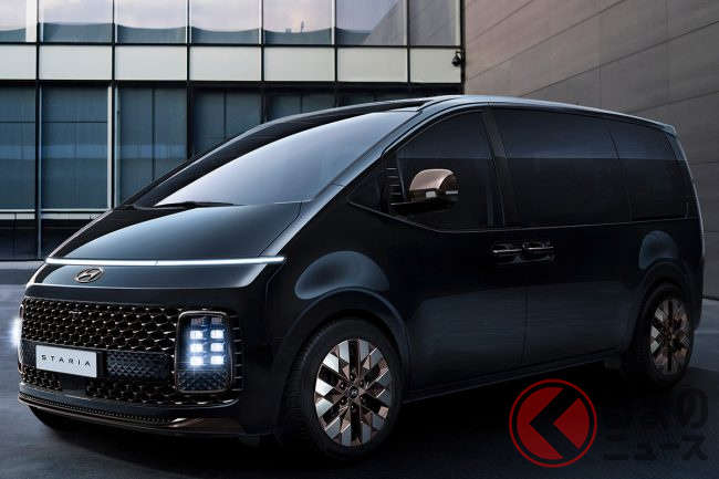斬新「商用バン」発表! “一文字ライト”採用の流麗ボディ×「豪華内装」仕様も! 「両側スライドドア」など快適装備も充実! “ディーゼルターボ”搭載のヒョンデ「スターリア」台湾で登場!