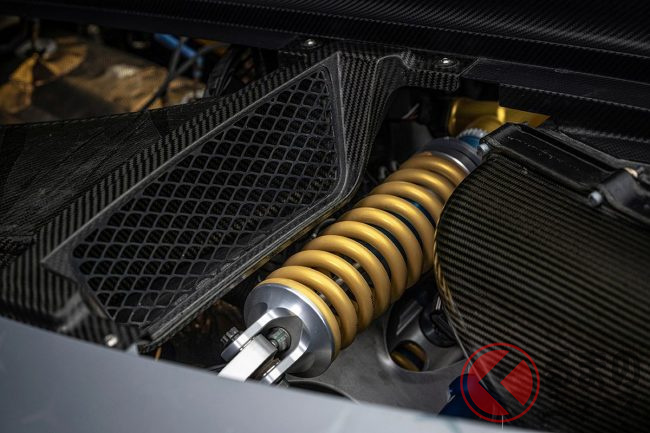 空力性能を徹底追求し、フロントには可動式フラップ、リアには2段可動式ウイングを装備。これらはドライビングモードに応じて自動的に作動します。
