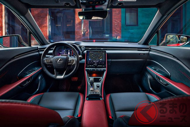 インテリアではブラックのセミアニリンシートにインディゴレッドのアクセントを組み合わせ、シックな空間に鮮烈なコントラストを演出。さらにシート背もたれには赤い「タタミステッチ」が2本入れられ、レクサスのクラフトマンシップをさりげなく表現しています。