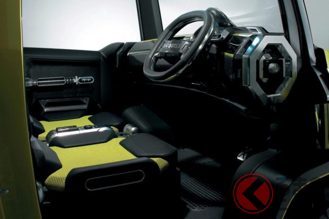 さらに、ドアハンドルは取り外して懐中電灯や緊急時のハンマーとしても使用できるなど、スズキらしい遊び心とアイデアが随所に盛り込まれていました。