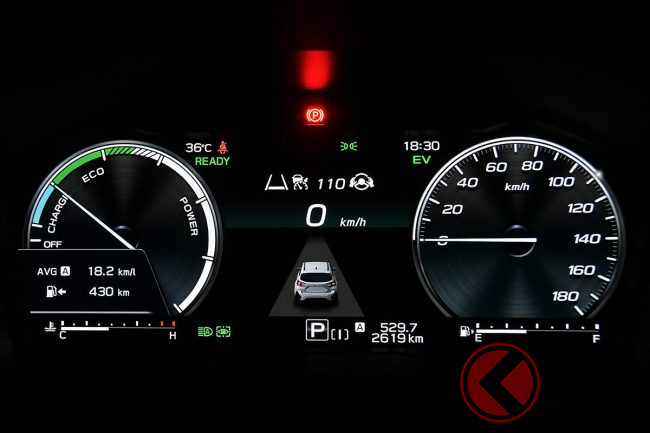 その仕組みを簡単におさらいすると、水平対向4気筒エンジン(2.5リッター)に発電用/駆動用のモーターとリチウムバッテリーを組み合わせた「シリーズ・パラレル式」のハイブリッドシステムです。