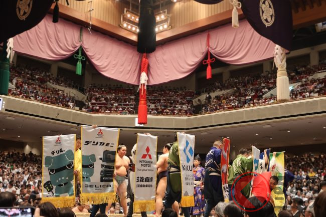 9月場所は今週末に千秋楽を迎えます。9月27日と28日は、「デリ丸。」の姿が大きく描かれたものや「デリ丸。」とデリカミニが並んだデザインなど、3本の懸賞旗が掲げられる予定です。